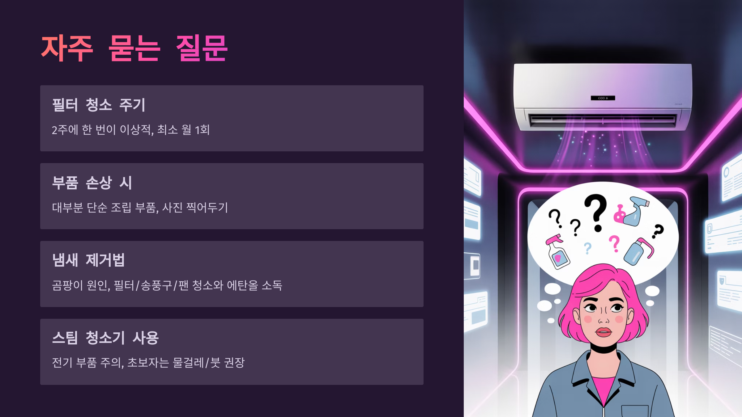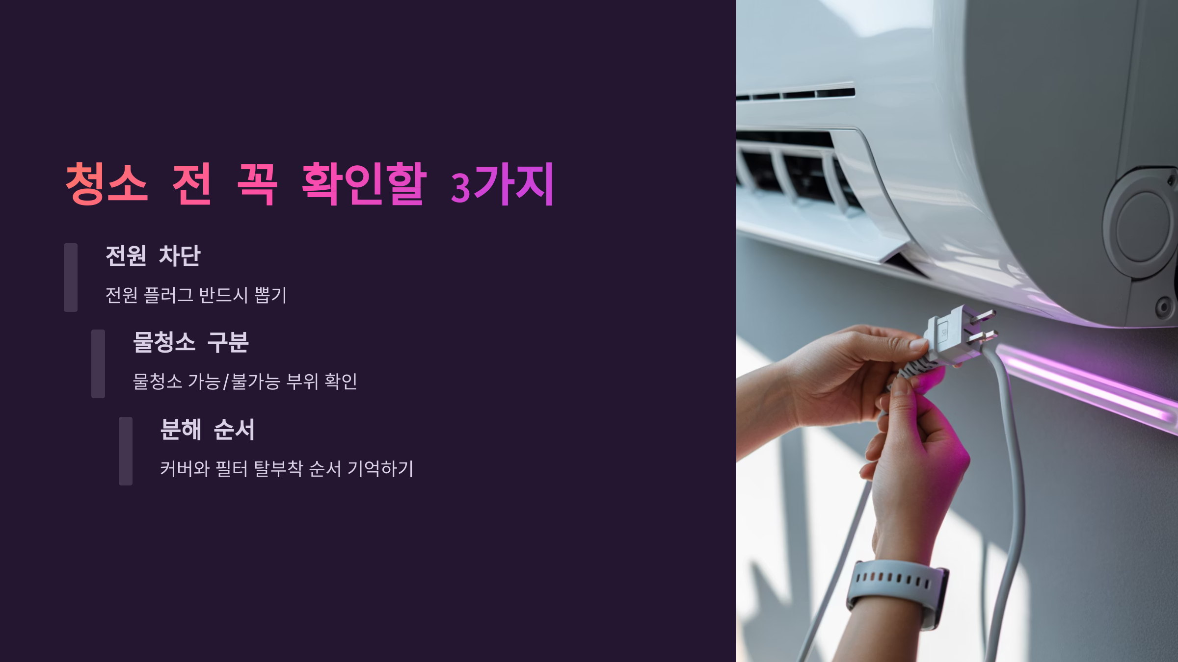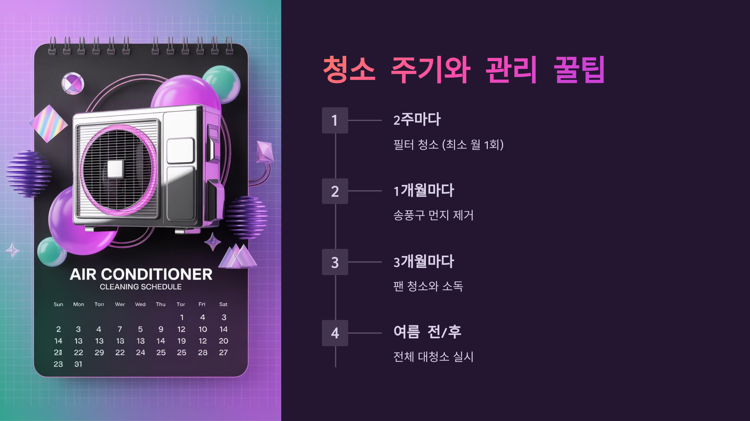 에어컨 청소, 이제 그렇게 어렵게 느껴지지 않으시죠? 한 번 해보면 정말 별거 아니거든요. 오히려 시원한 바람이 뽀송하게 나오는 걸 보면, "왜 진작 안 했지?" 싶을 거예요. 올여름엔 돈 들이지 말고 내 손으로 직접 관리해보세요. 시원함도 두 배, 뿌듯함도 두 배가 될 거예요!