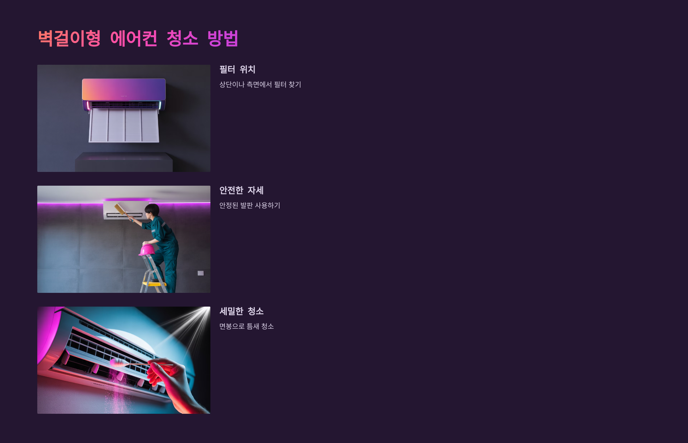 - 에어컨용 클리너나 에탄올을 분사 후 마른 천으로 닦아요.