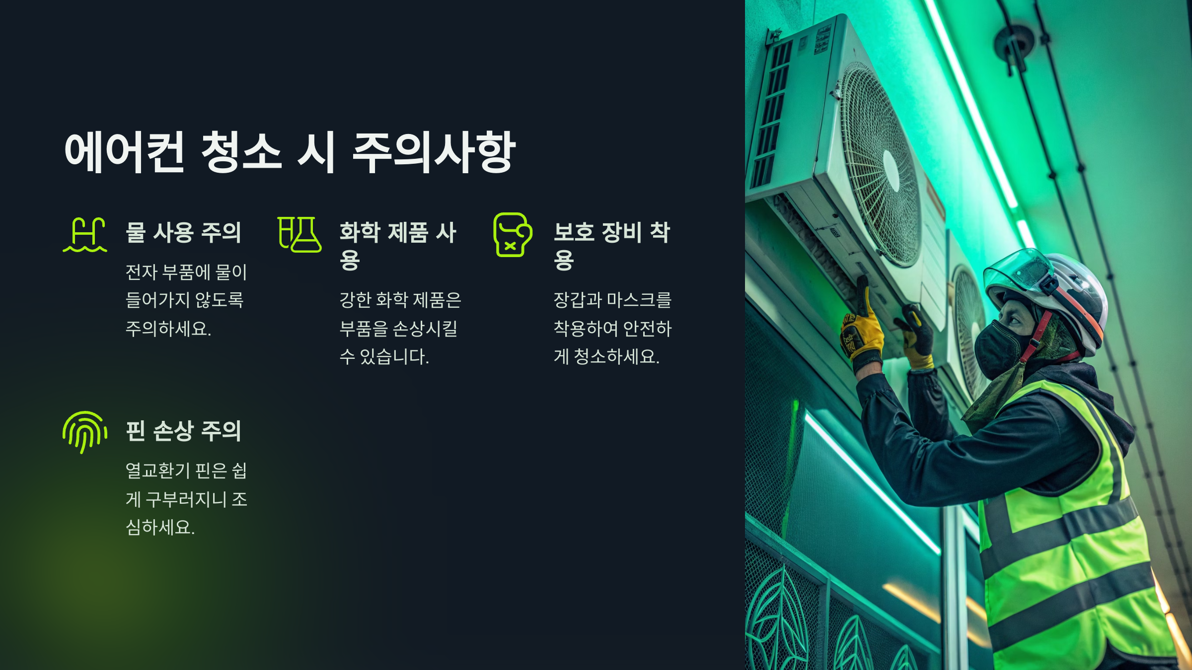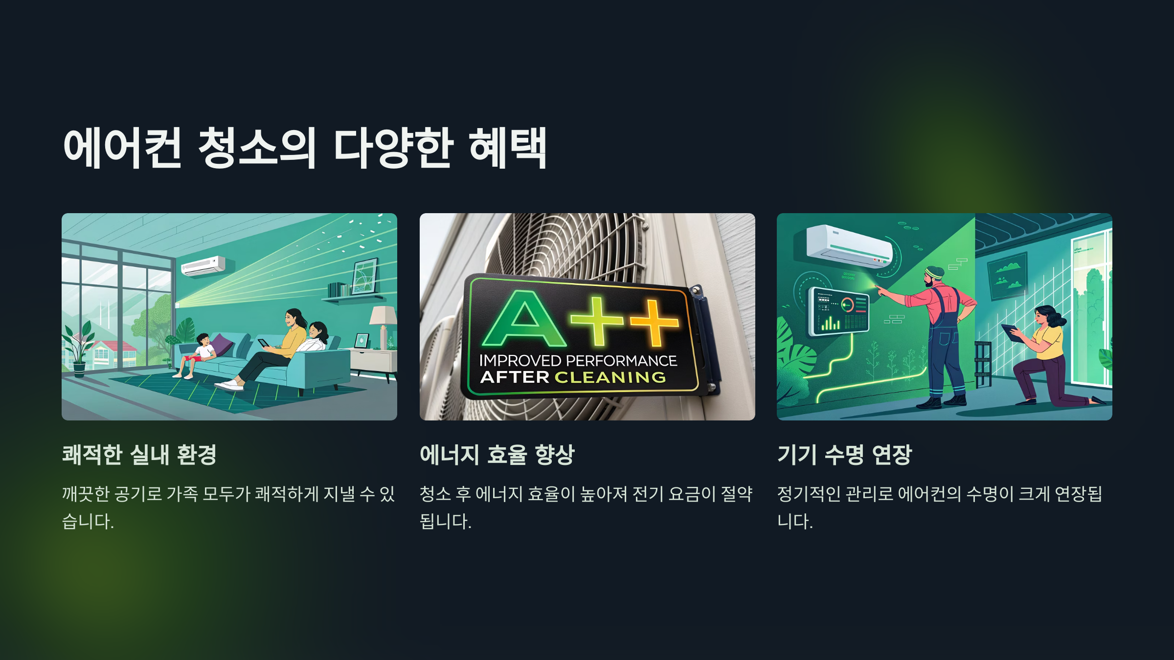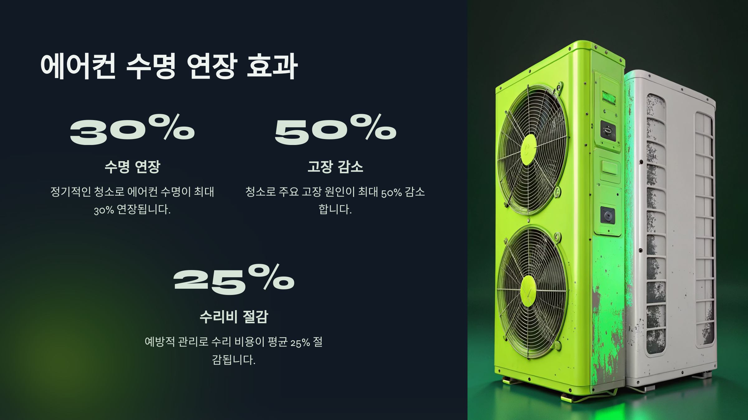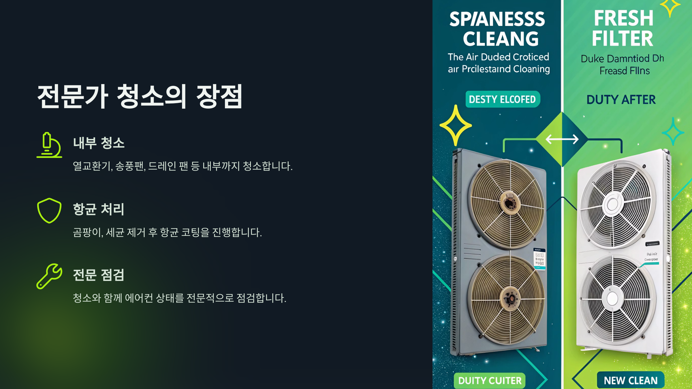 - 열교환기, 송풍팬, 드레인 팬 등 내부까지 청소