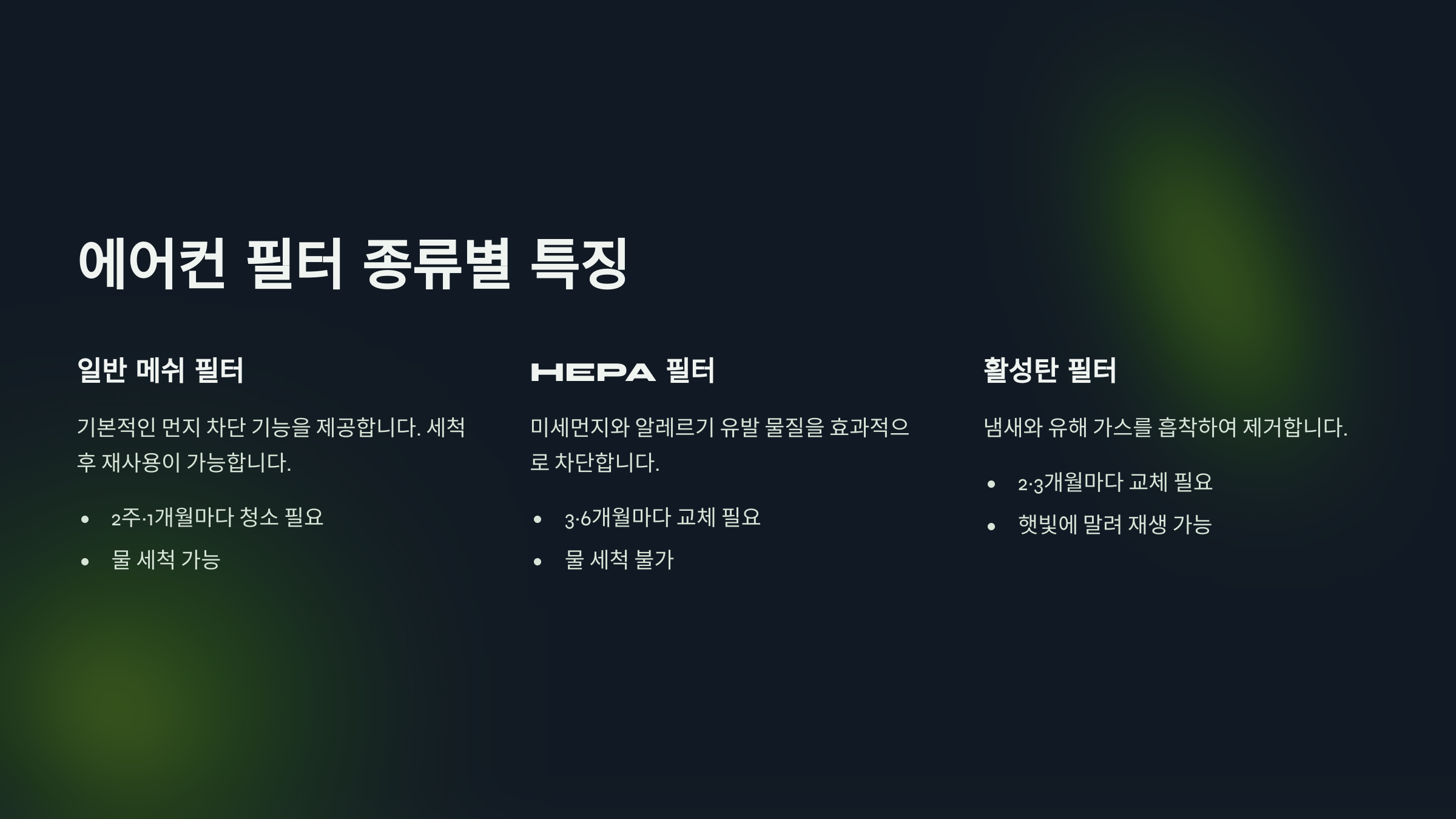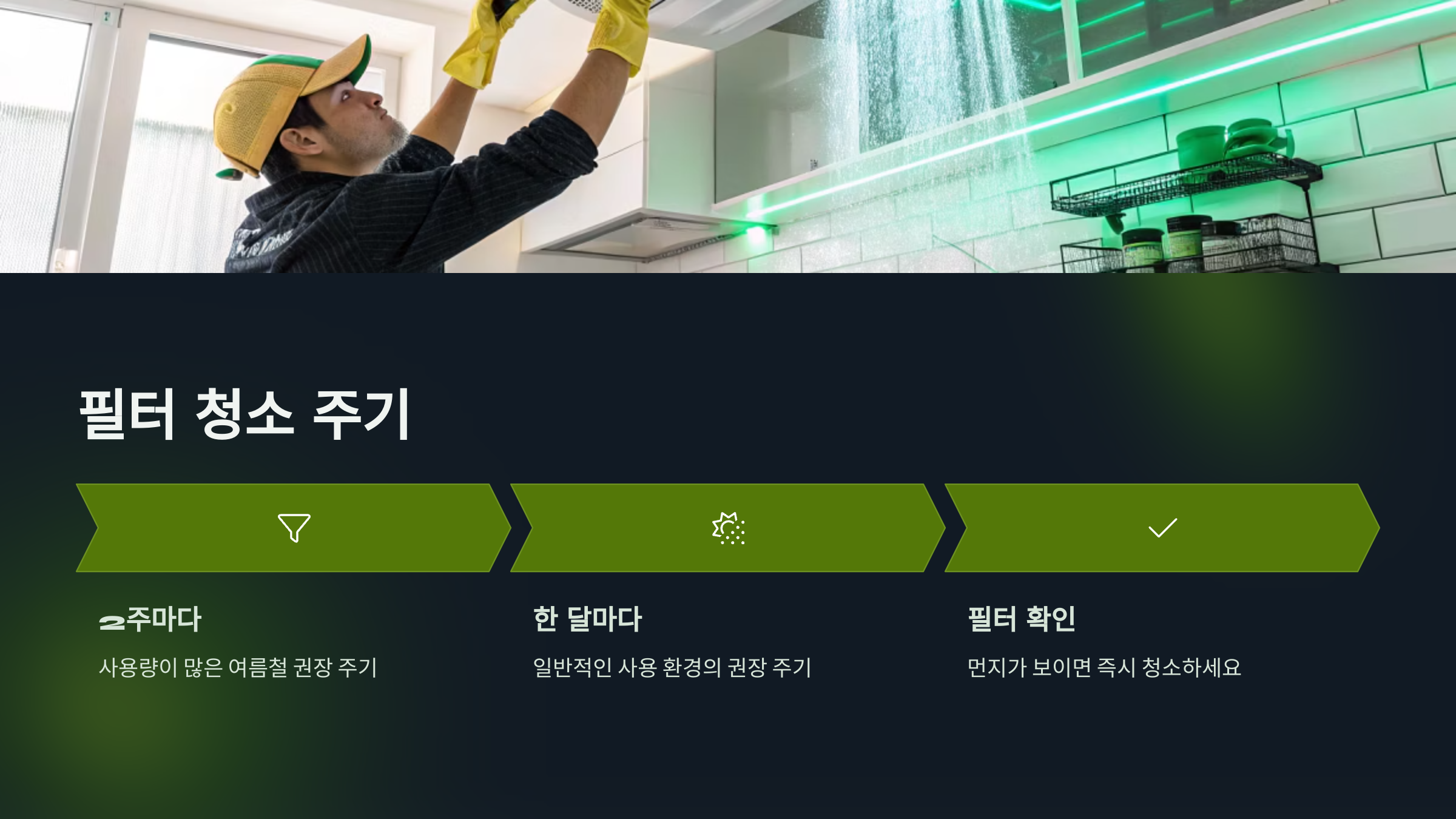 - 미지근한 물과 중성세제로 필터 세척