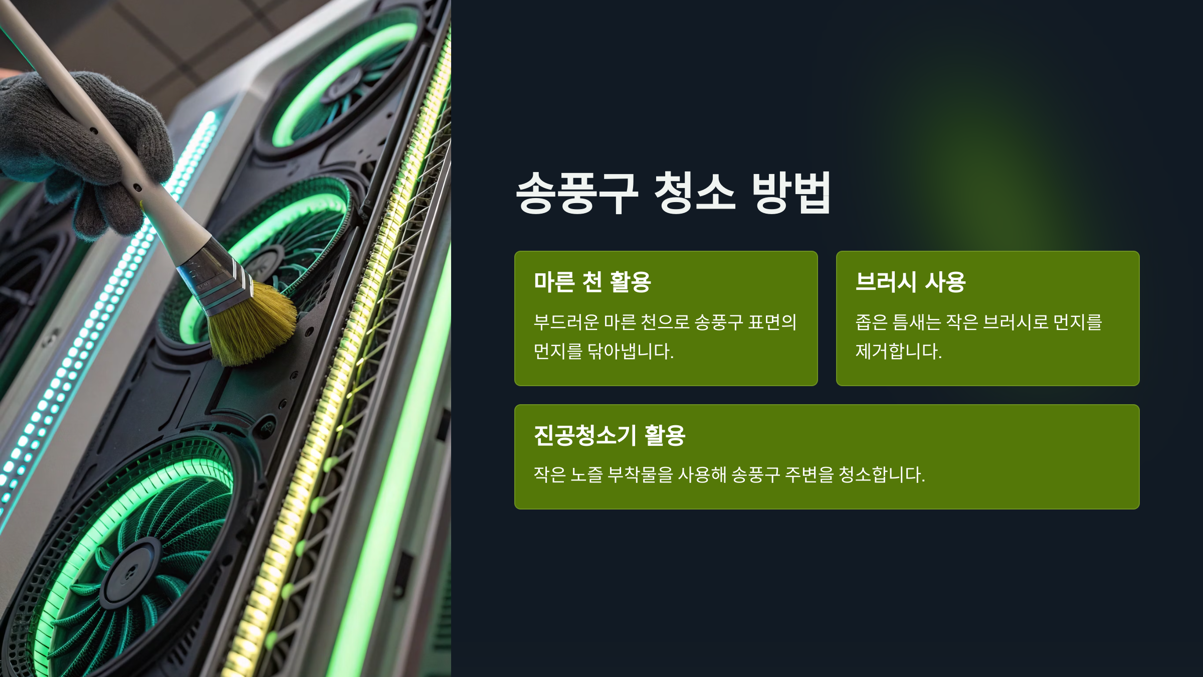 - 바람이 나오는 송풍구 주변 먼지 제거