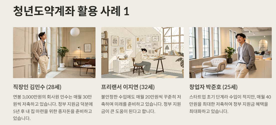 청년도약계좌, 이름만 들어도 뭔가 든든하죠? 오늘 정리한 정보가 여러분의 자산 형성에 조금이나마 도움이 되었길 진심으로 바랄게요. 아직 망설이고 있다면, 늦기 전에 도전해보세요. 때로는 작은 선택이 인생의 큰 전환점이 되기도 하니까요. 궁금한 점이나 경험담 있다면 댓글로 편하게 나눠주세요. 같이 정보도 공유하고 힘도 얻는 공간이 되었으면 좋겠어요!