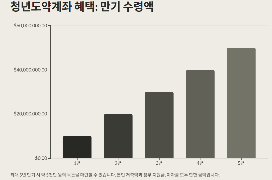 | 만기 수령액 | 최대 5년 만기 시 약 5천만 원 수령 가능 |