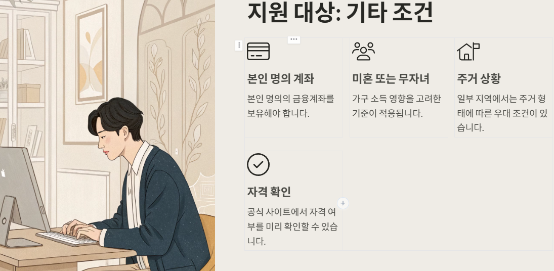 아무나 신청할 수는 없어요. 아래 조건에 해당되어야 하니까 꼭 확인하세요!