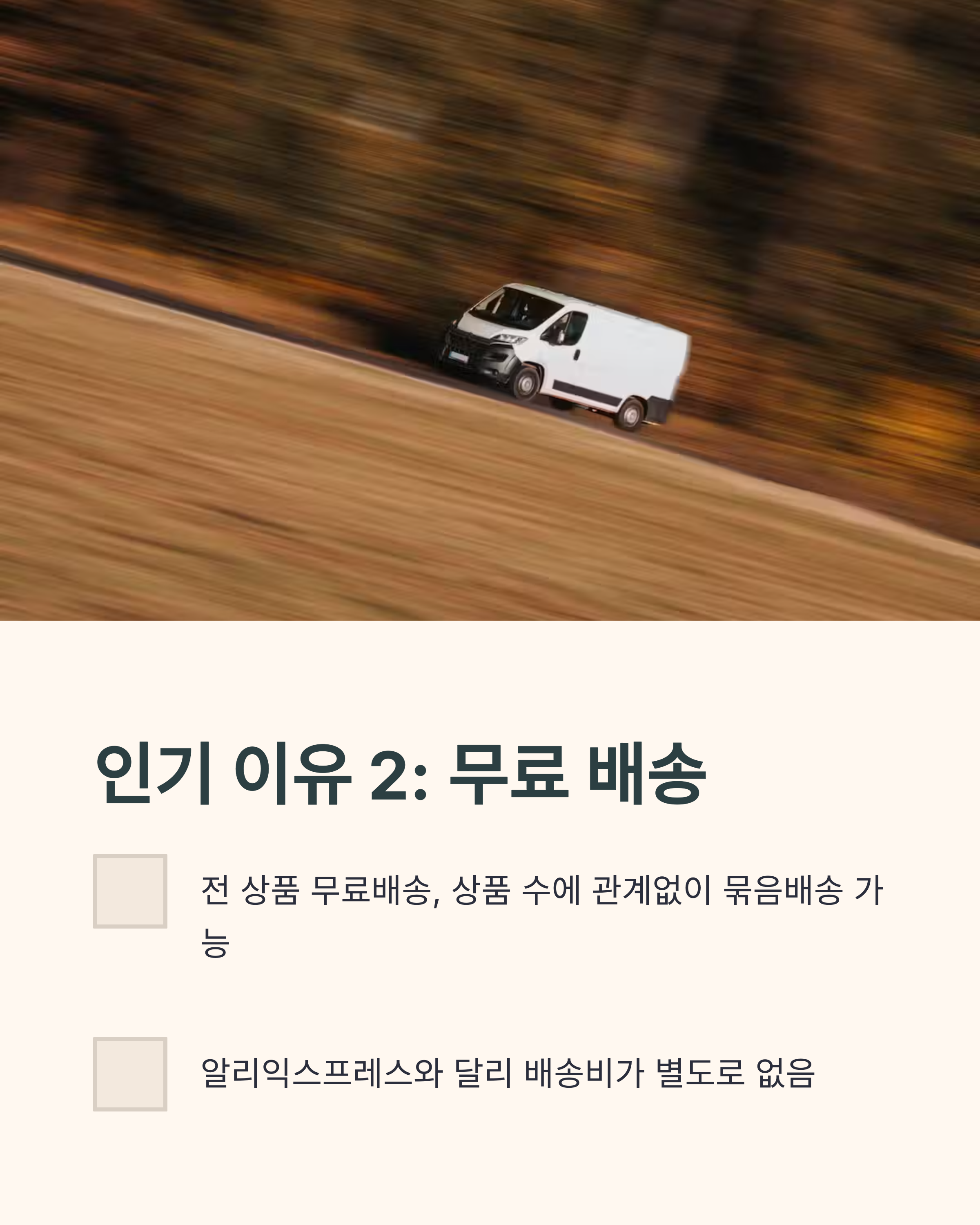| 배송 경로 | 중국 창고 직배송 | 현지 물류창고 → 택배 |