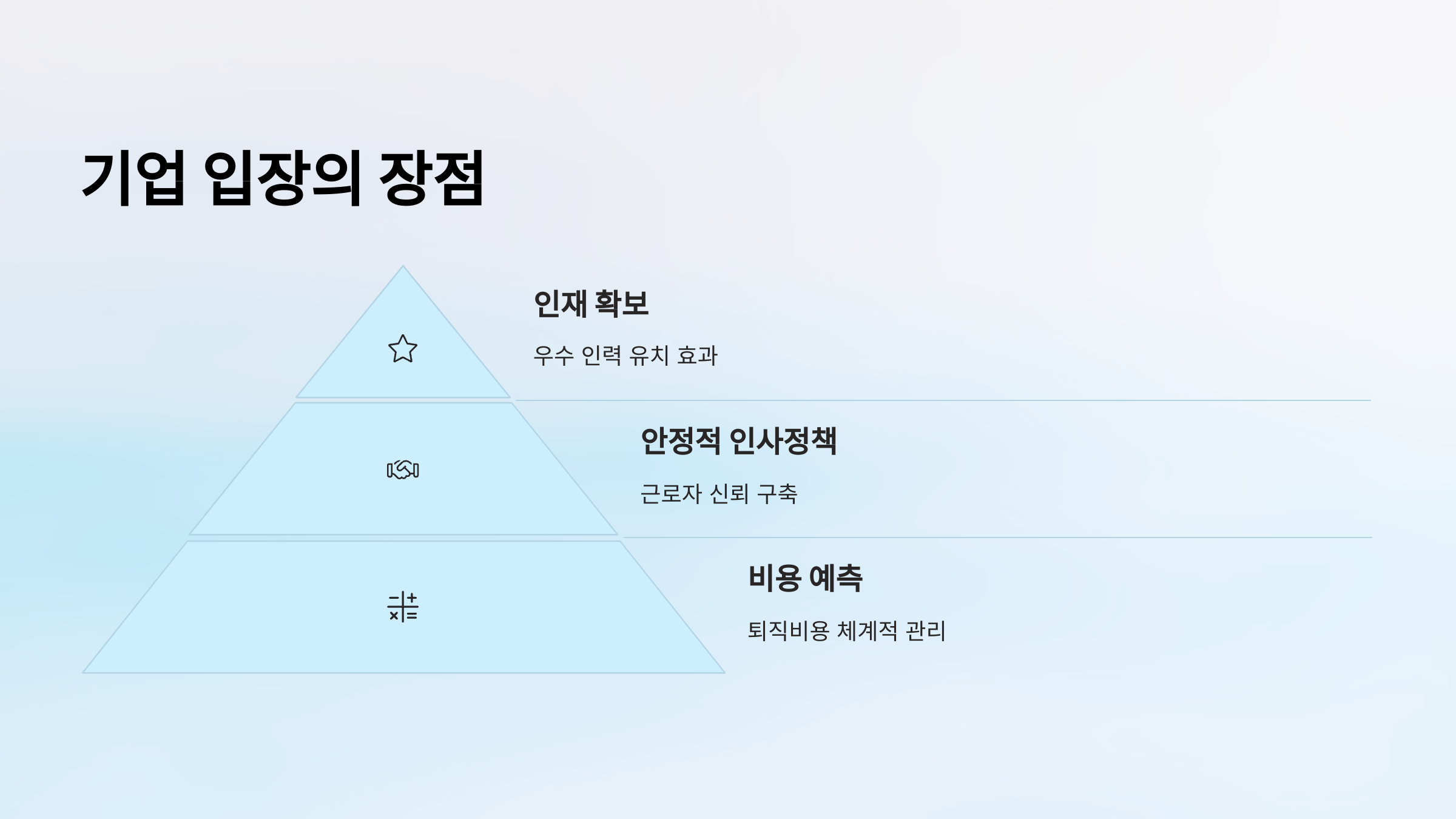 모든 사업장은 퇴직급여제도를 도입해야 하며, 퇴직연금은 그 중 하나로 선택 가능합니다.