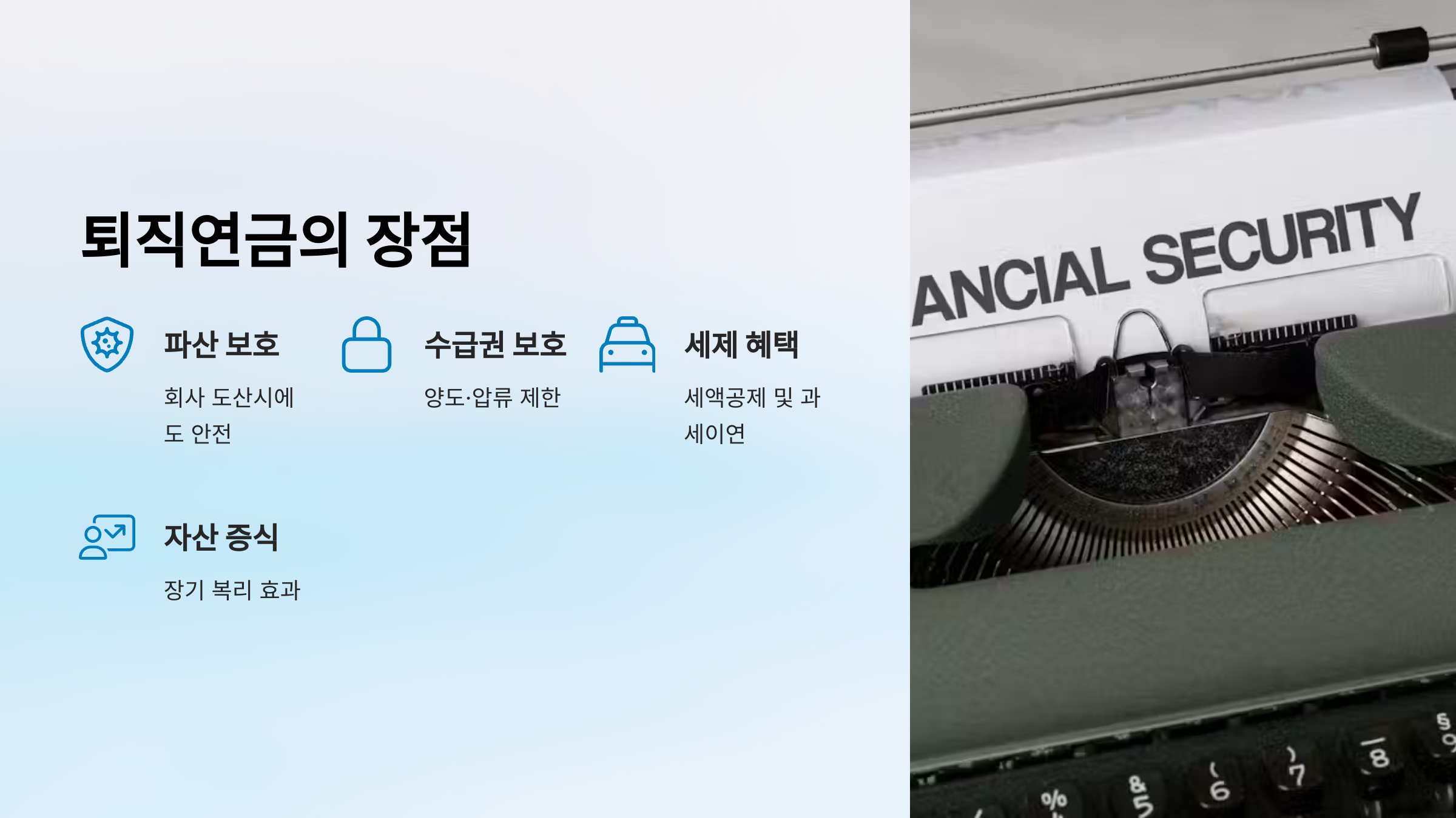 퇴직연금은 금융회사에 별도 적립되기 때문에 회사와는 별개로 보호받습니다.