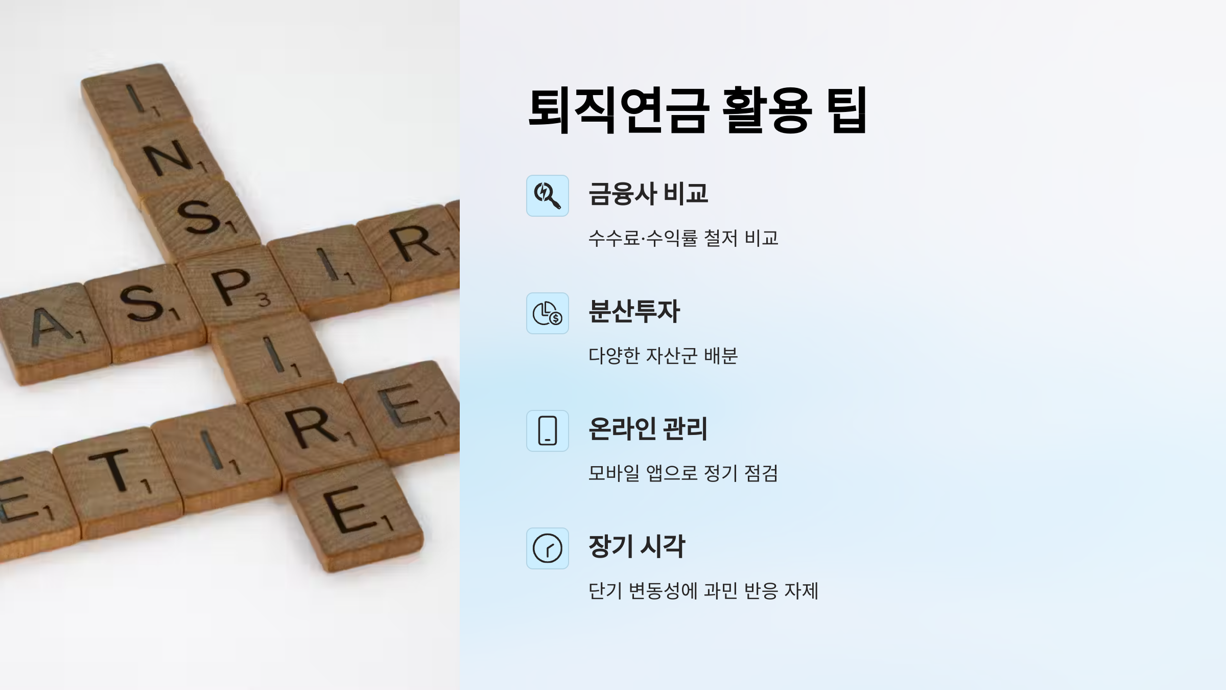 - 퇴직연금은 장기적인 관점에서 분산 투자 필요